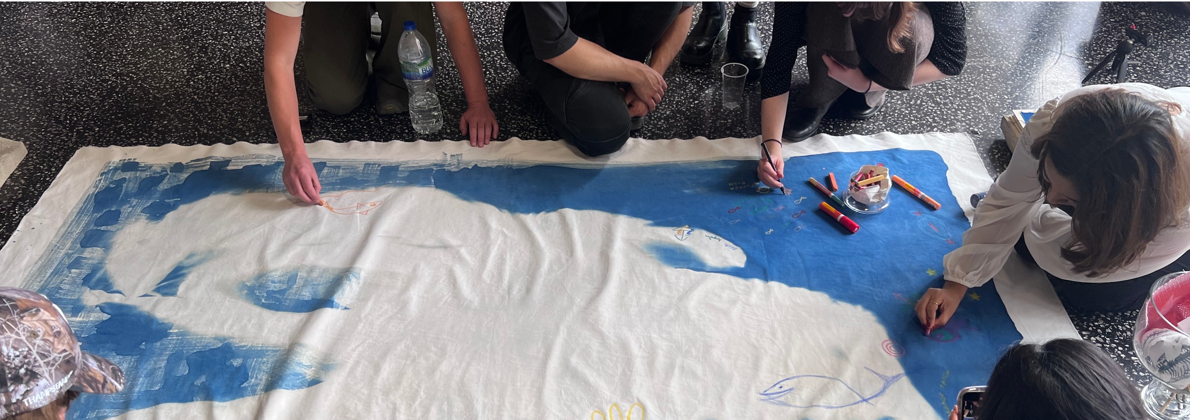 We begin with a short, accessible introduction to how textiles impact water from fiber cultivation and dyeing to microfibres. Participants then learn quick, repair-friendly upcycling methods (stitch, patch, bind, and print using reclaimed materials) to personalise their garment. Throughout, we weave in sensory prompts and brief storytelling to ground the making in care, craft, and climate awareness.